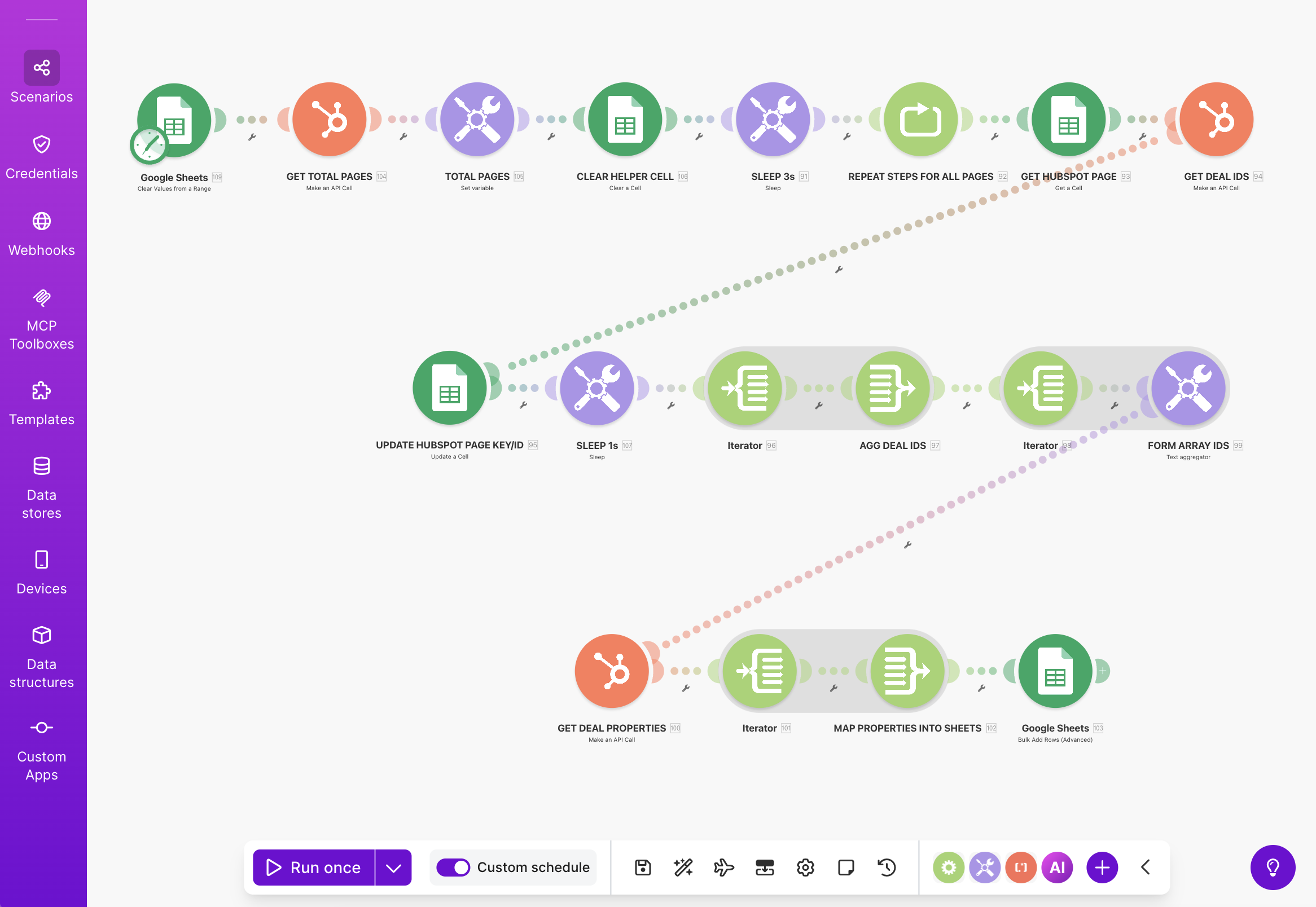 Pulling numbers from Google Sheets, ad platforms, CRMs, and trying to get them into one place that makes sense. By the time the report is done, the data is already out of date. I build systems that run at 2am so the report is ready before anyone gets to their desk. If you need a live dashboard on top of that, I build custom dashboards too.